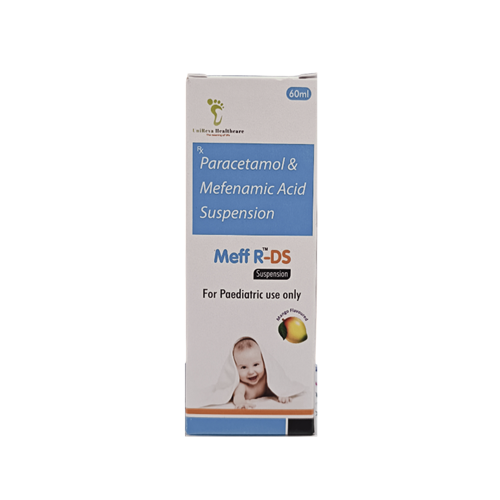 Meff R-DS is a dual-action analgesic and anti-inflammatory syrup designed to relieve pain, fever, and inflammation in children. It is commonly used for conditions like sore throat, teething pain, and fever-related discomfort.